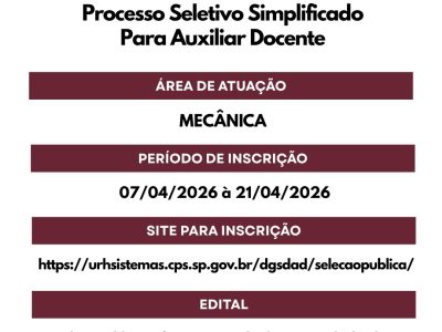 Programa Dinheiro Direto na Escola Paulista – PDDE Paulista para as Associações de Pais e Mestres das Escolas Técnicas Estaduais Etec(s) do Centro Estadual de Educação Tecnológica ‘Paula Souza’ – CEETEPS, instituído pela Lei 17.149/2021, […]
