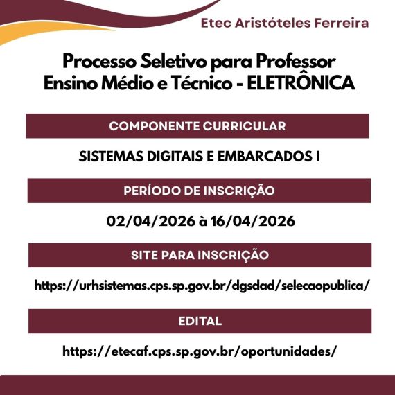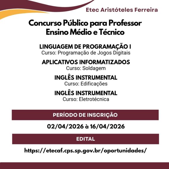 Inscrições de 02/04/2026 até 23h59 de 16/04/2026. Não perca tempo! Acesse o edital completo na aba Oportunidades e candidate-se agora.
