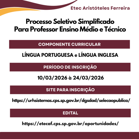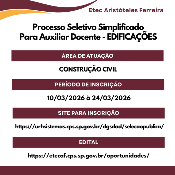 PROCESSO SELETIVO – https://etecaf.cps.sp.gov.br/oportunidades